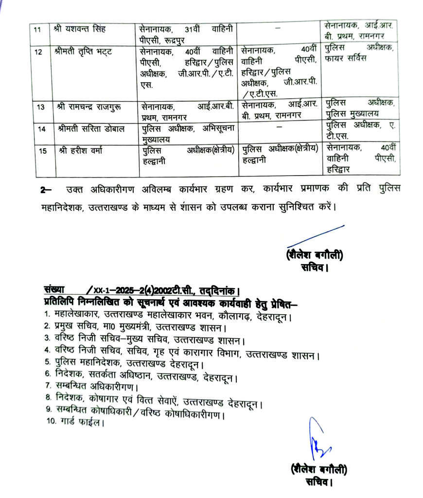 उत्तराखंड में IPS अधिकारियों का बड़ा फेरबदल: गृह विभाग ने जारी किए तबादला आदेश, कई महत्वपूर्ण पदों पर नई तैनाती