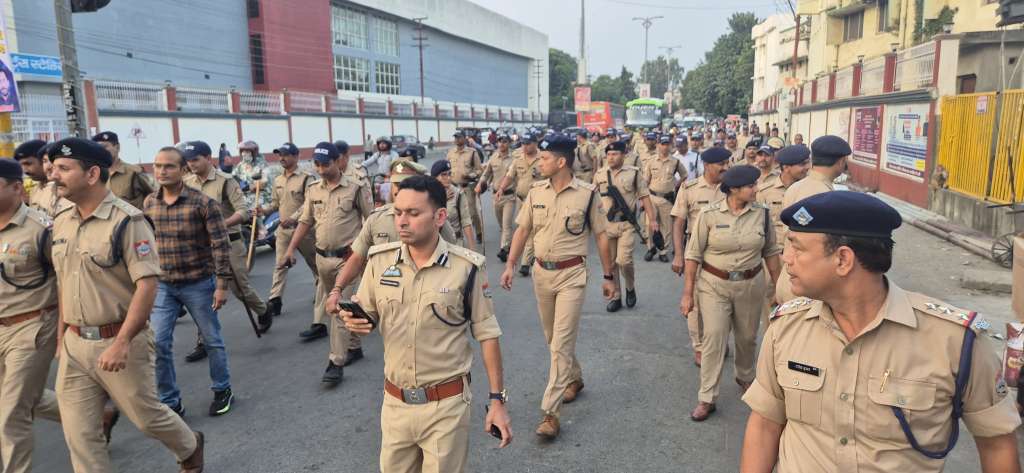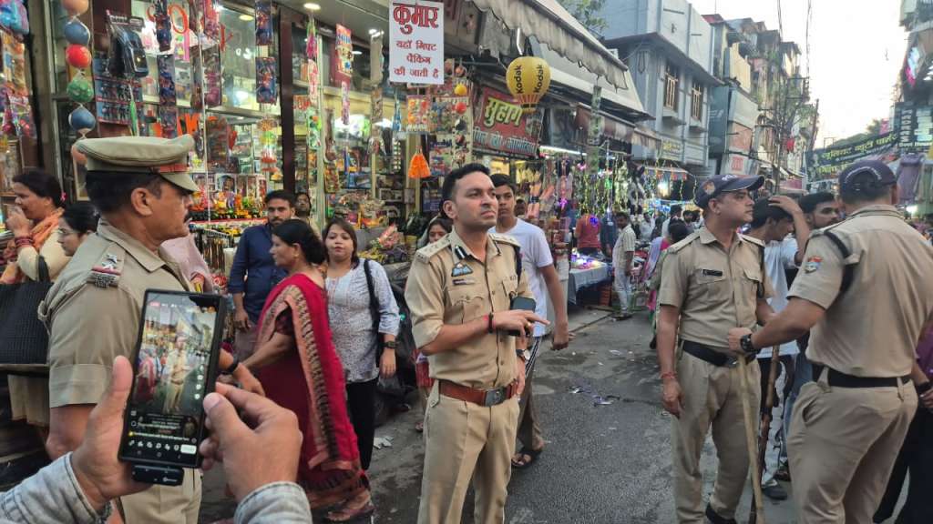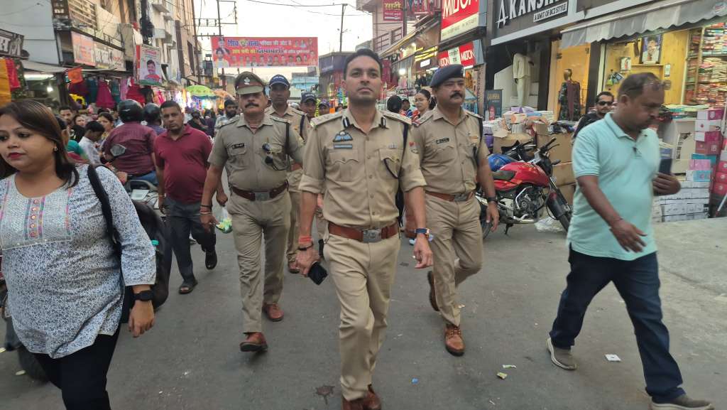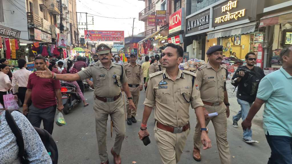 *आगामी दीपावली पर्व* को शांति, सुरक्षा और सौहार्दपूर्ण वातावरण में मनाए जाने के उद्देश्य से आज दिनाक- 14-10-2025 की सायं *वरिष्ठ पुलिस अधीक्षक नैनीताल श्री प्रहलाद नारायण मीणा (IPS)* ने पुलिस बल के साथ *हल्द्वानी शहर के प्रमुख बाजारों में पैदल फ्लैग मार्च एवं औचक निरीक्षण* किया। शहर में बाजारों और गलियों की सुरक्षा व्यवस्था का जायजा लेते हुए अधीनस्थ अधिकारियों को आवश्यक दिशा निर्देश दिए गए।