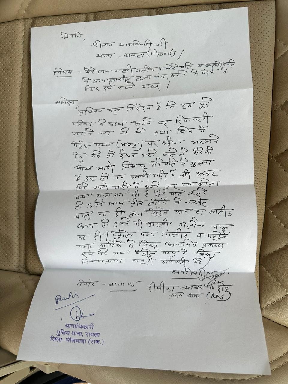 एसडीएम की पत्नी दीपिका व्यास ने इस मामले पेट्रोल पंप कर्मचारियों के खिलाफ छेड़छाड़ की FIR दर्ज करवाई है. शिकायत में उन्होंने लिखा कि, पेट्रोल पंप कर्मी ने मुझे आंख मारी, जिससे मेरे पति गुस्से में आ गए और उन्होंने कर्मचारी को डांट लगाई. इसके बाद कर्मचारी हमारी गाड़ी छोड़कर पीछे खड़ी गाड़ी में पेट्रोल भरने लगा और कहा ‘क्या माल लग रही है’. मेरे पति ने विरोध किया तो तीन लोगों ने हम पर हमला कर दिया.
